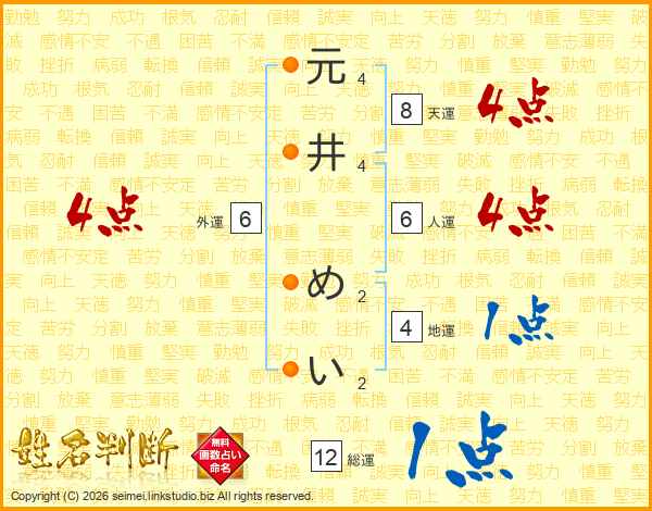 元井めいさんの天運は8画の4点!