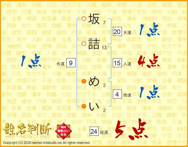 坂詰めいさんの総運は24画の5点!