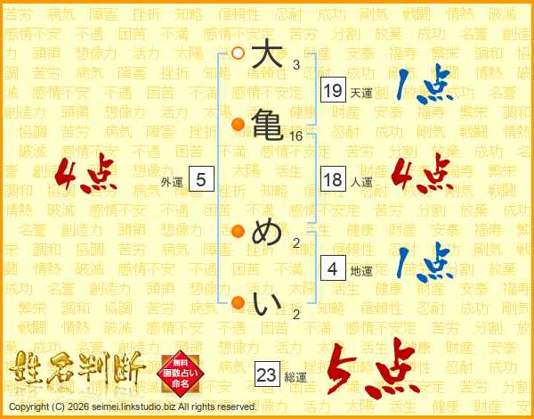 大亀めいさんの総運は23画の5点!