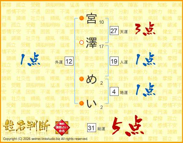 宮澤めいさんの総運は31画の5点!