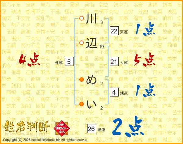 川辺めいさんの総運は26画の2点!