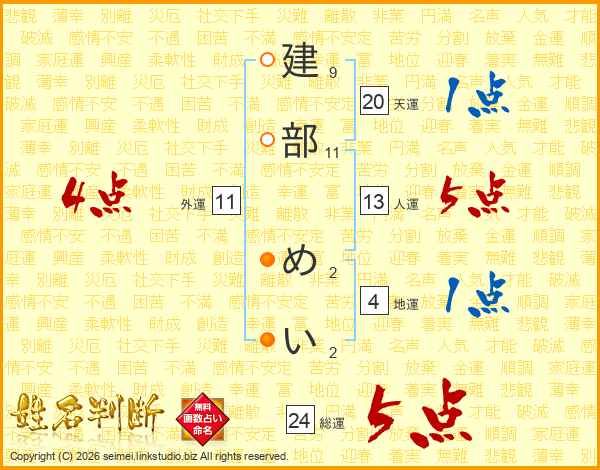 建部めいさんの総運は24画の5点!