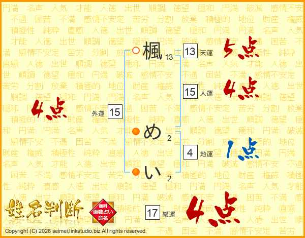 楓めいさんの総運は17画の4点!