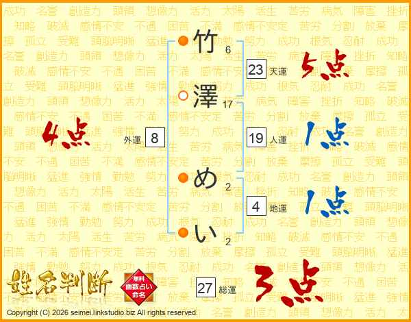 竹澤めいさんの天運は23画の5点!