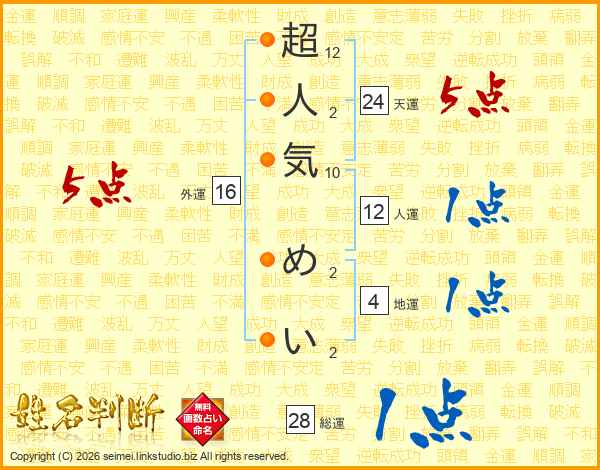 超(12画)人(2画)気(10画) め(2画)い(2画)