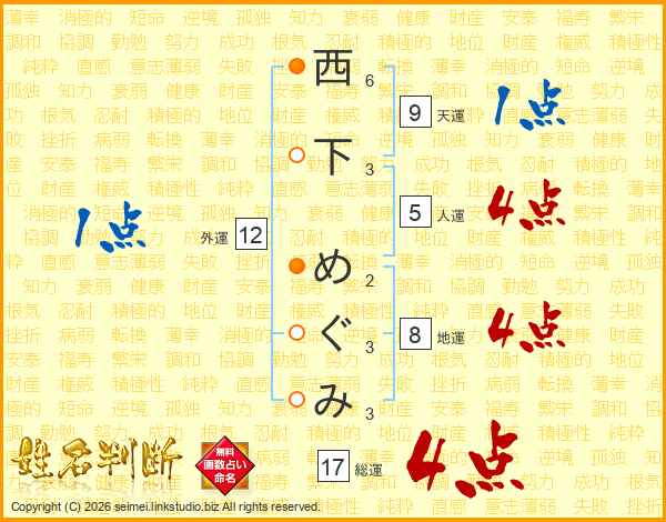西下めぐみさんの総運は17画の4点!