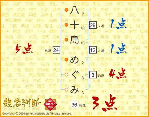 八十島めぐみさんの総運は36画の3点!
