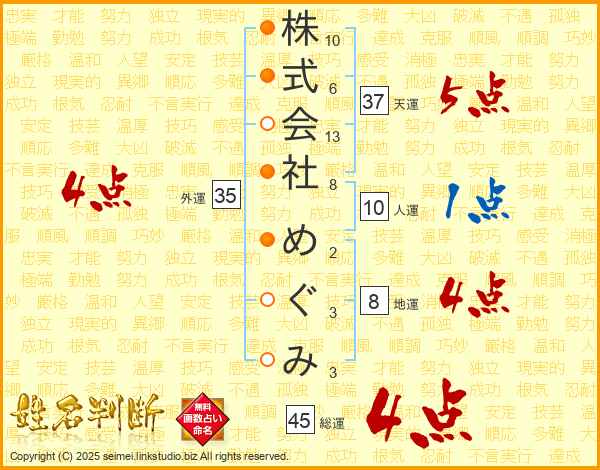 株(10画)式(6画)会(13画)社(8画) め(2画)ぐ(3画)み(3画)