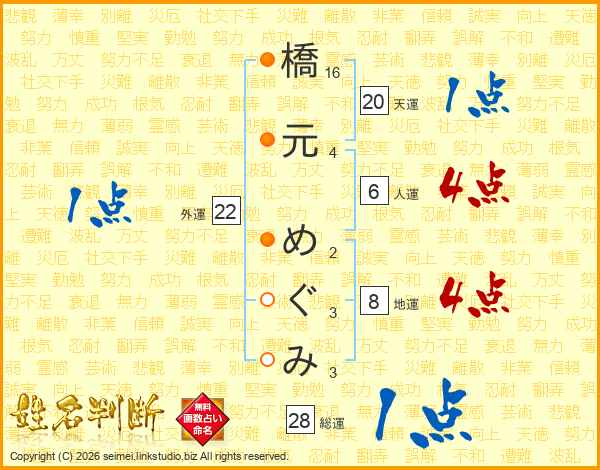 橋元めぐみさんの総運は28画の1点!