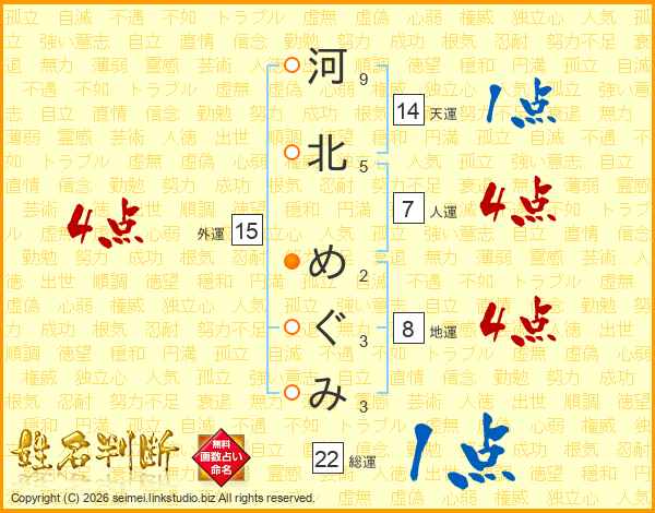 河北めぐみさんの天運は14画の1点!