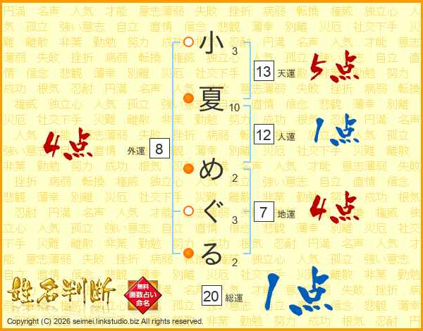 小夏めぐるさんの総運は20画の1点!