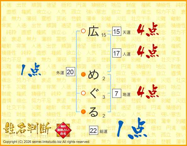 広めぐるさんの総運は22画の1点!
