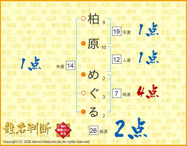 柏(9画)原(10画) め(2画)ぐ(3画)る(2画)