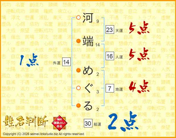 河端めぐるさんの総運は30画の2点!