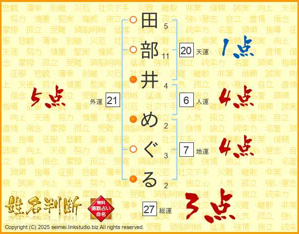 田部井めぐるさんの外運は21画の5点!