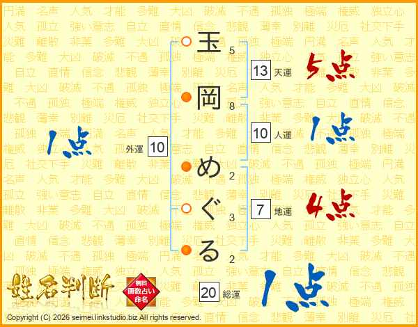 玉岡めぐるさんの総運は20画の1点!
