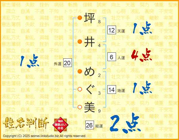 坪井めぐ美さんの総運は26画の2点!
