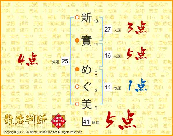 新(13画)實(14画) め(2画)ぐ(3画)美(9画)