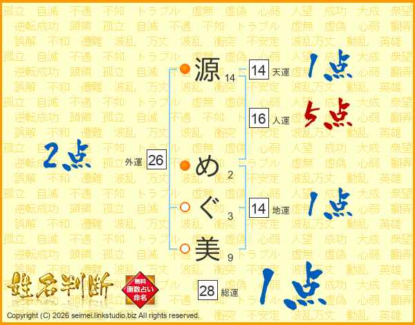 源めぐ美さんの天運は14画の1点!