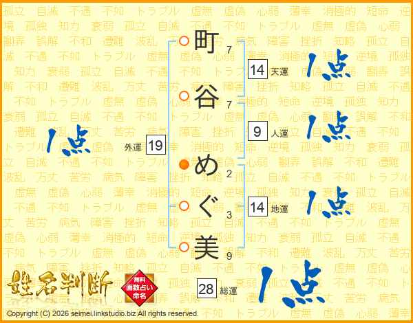 町谷めぐ美さんの天運は14画の1点!