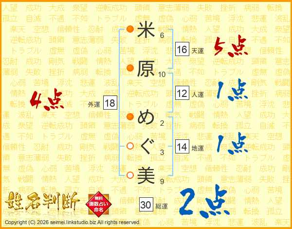 米原めぐ美さんの総運は30画の2点!