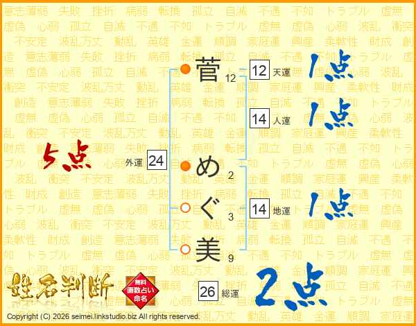 菅めぐ美さんの総運は26画の2点!