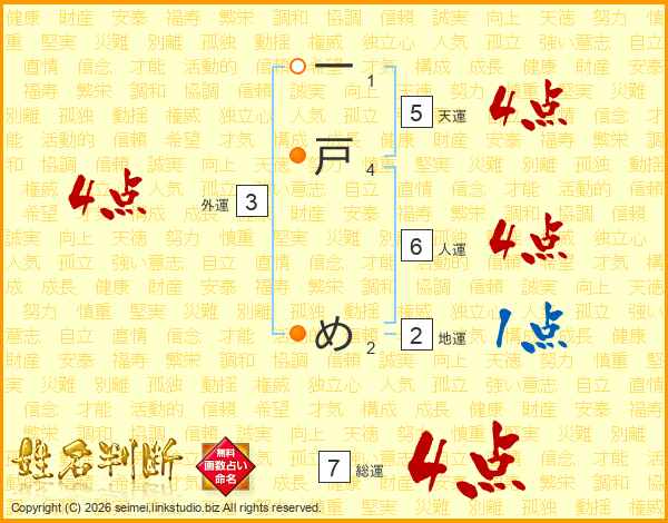 一戸めさんの総運は7画の4点!