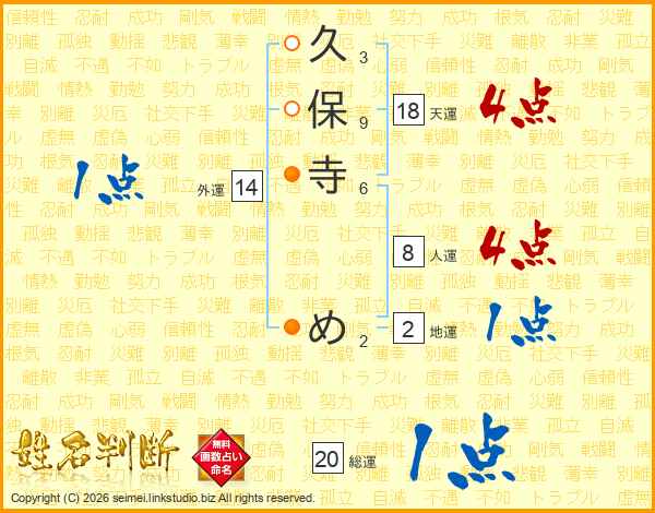 久保寺めさんの天運は18画の4点!