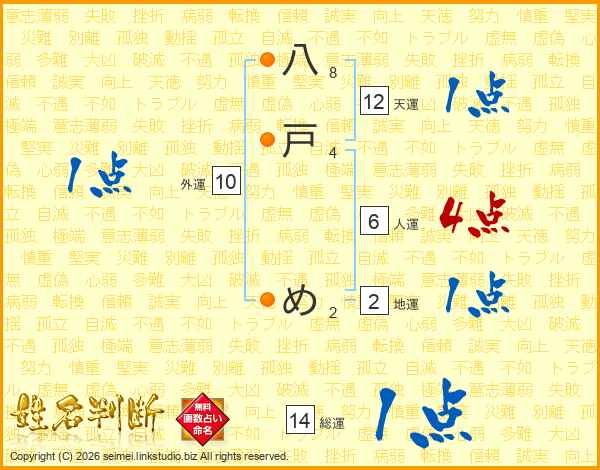 八戸めさんの総運は14画の1点!