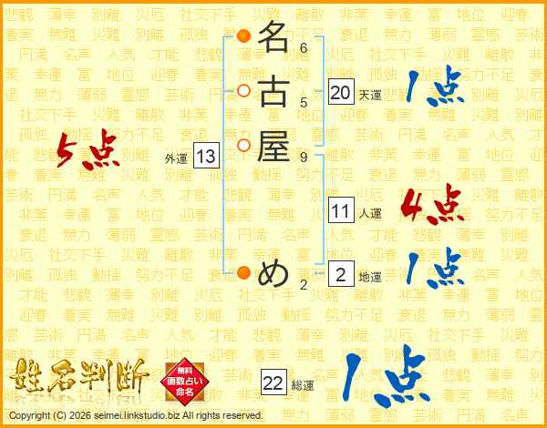 名古屋めさんの外運は13画の5点!