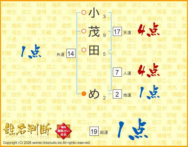 小茂田めさんの天運は17画の4点!