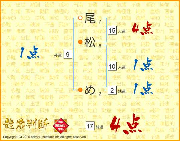 尾松めさんの総運は17画の4点!
