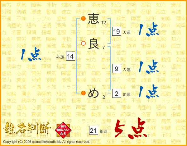 恵(12画)良(7画) め(2画)