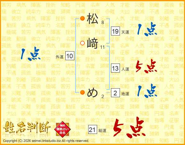 松﨑めさんの総運は21画の5点!
