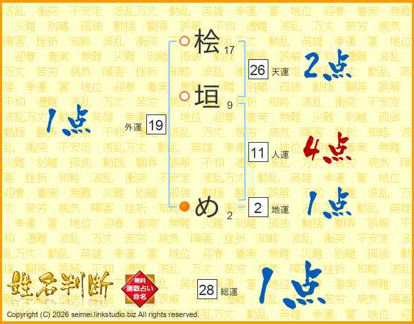 桧垣めさんの総運は28画の1点!