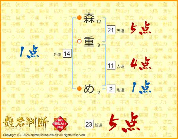 森重めさんの総運は23画の5点!
