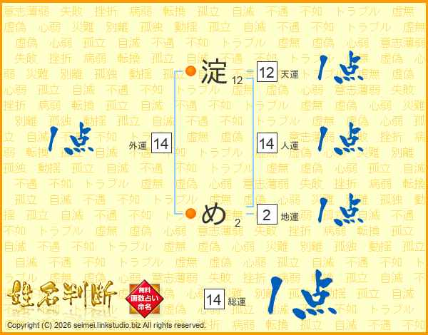 淀めさんの総運は14画の1点!