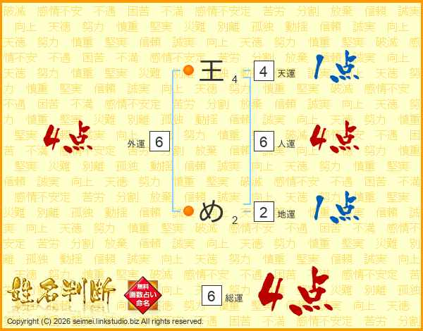 王めさんの総運は6画の4点!