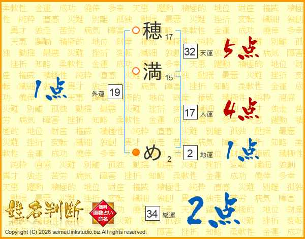 穂満めさんの総運は34画の2点!
