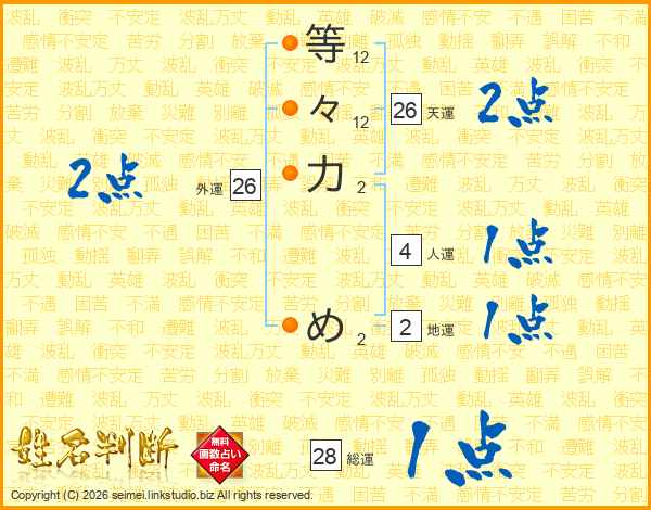 等々力めさんの天運は26画の2点!
