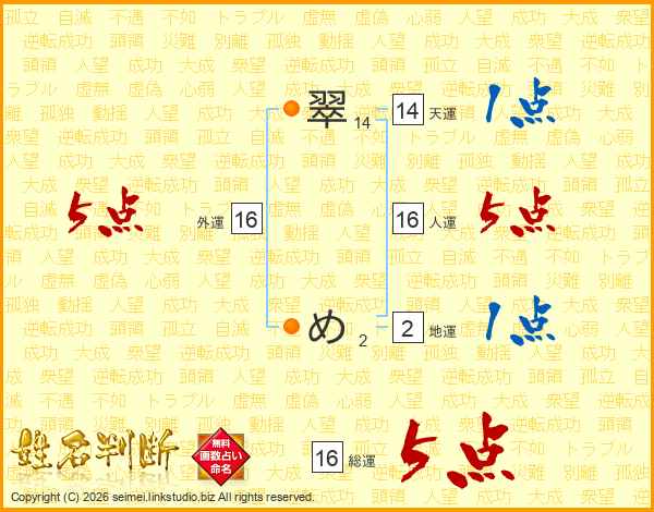 翠めさんの総運は16画の5点!