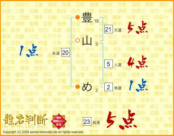 豊山めさんの天運は21画の5点!
