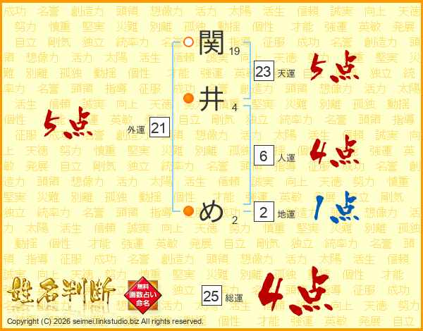 関井めさんの外運は21画の5点!