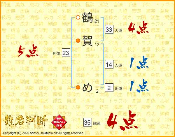 鶴賀めさんの総運は35画の4点!