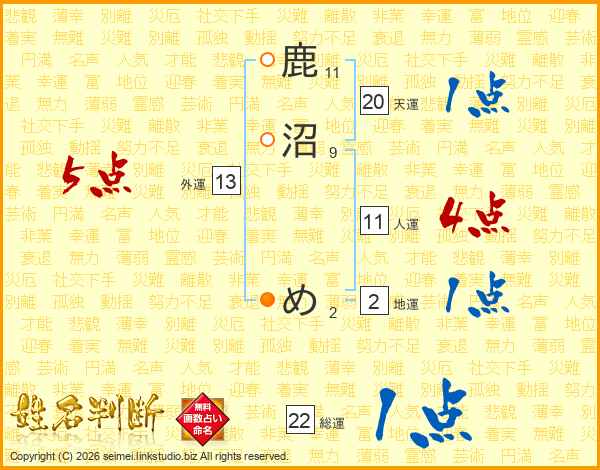 鹿沼めさんの人運は11画の4点!