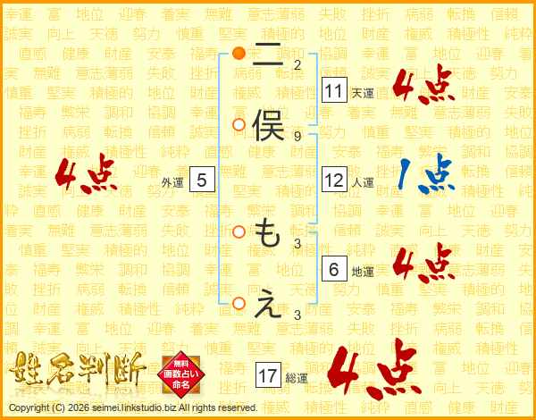 二俣もえさんの総運は17画の4点!