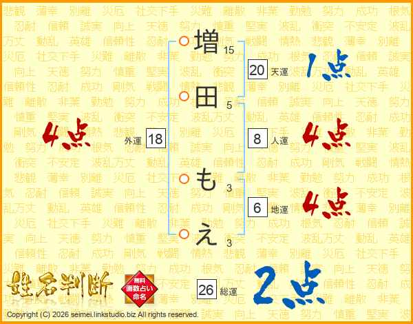 増田もえさんの総運は26画の2点!
