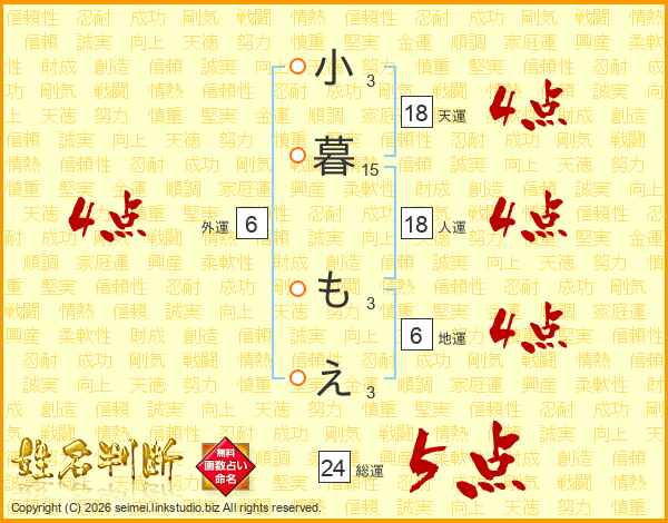 小暮もえさんの天運は18画の4点!