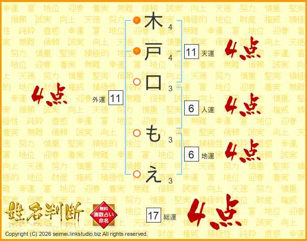木戸口もえさんの総運は17画の4点!
