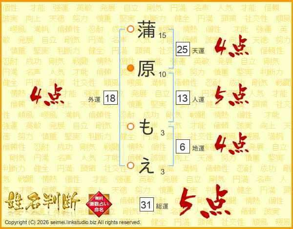 蒲原もえさんの天運は25画の4点!
